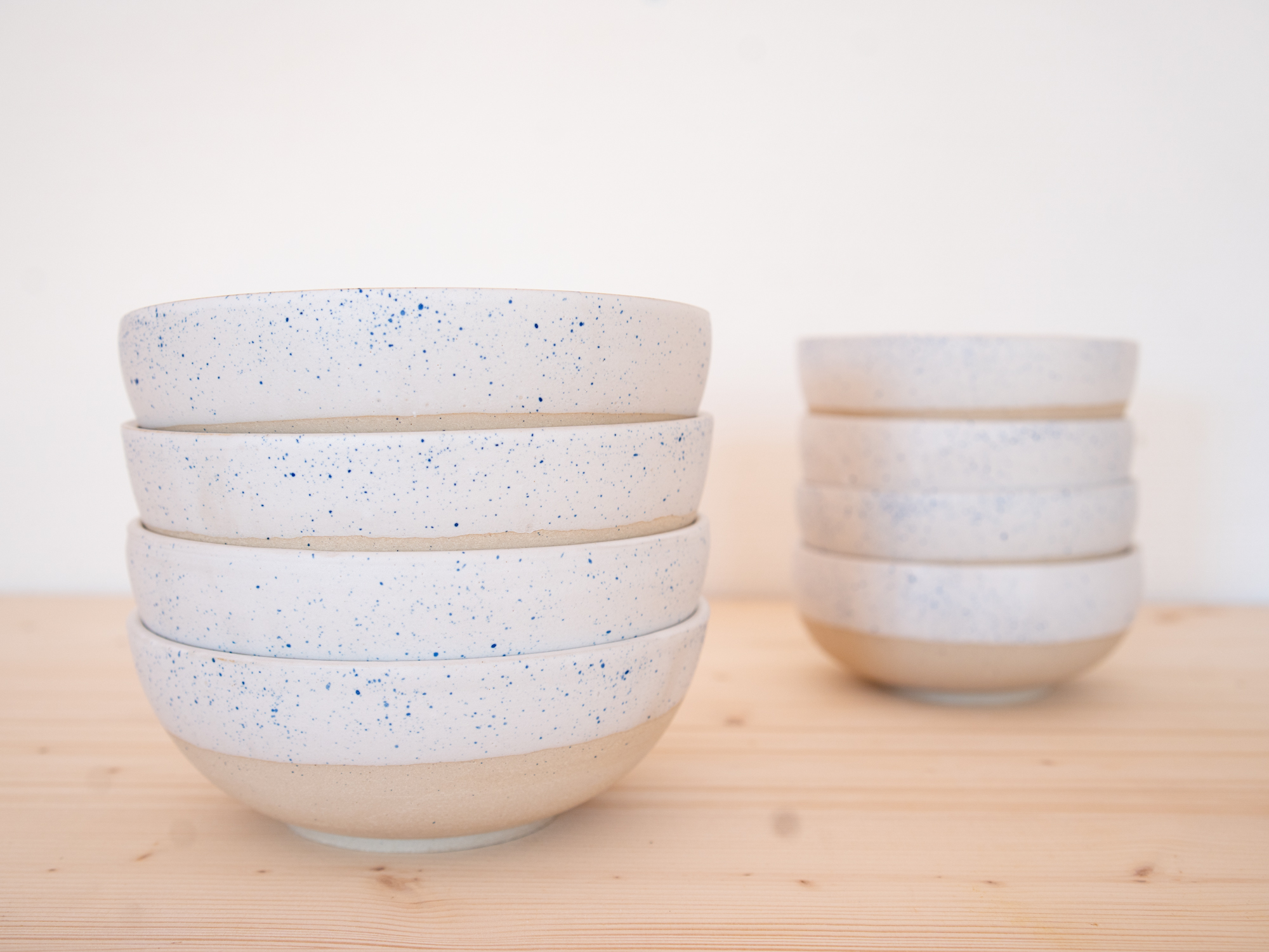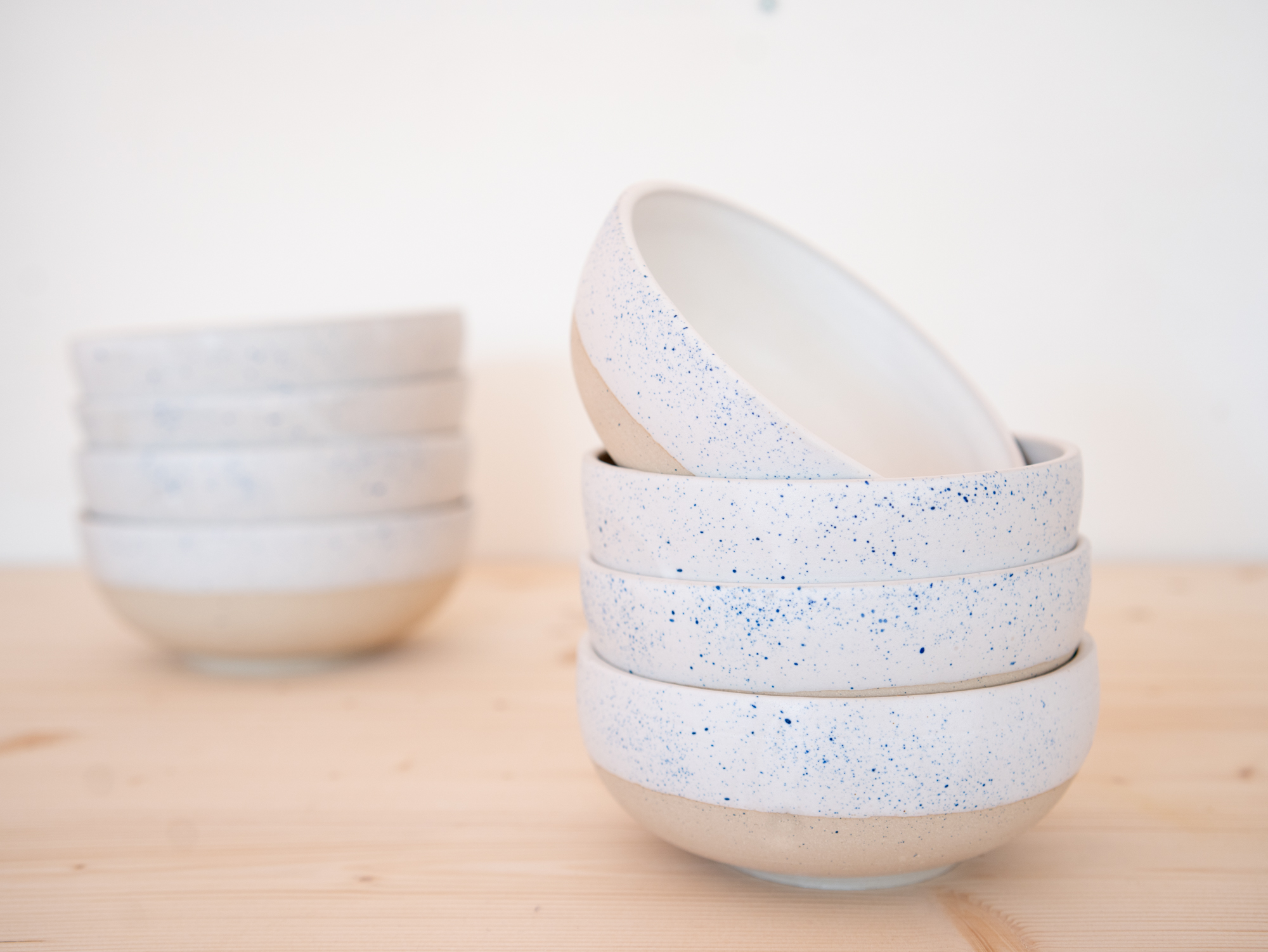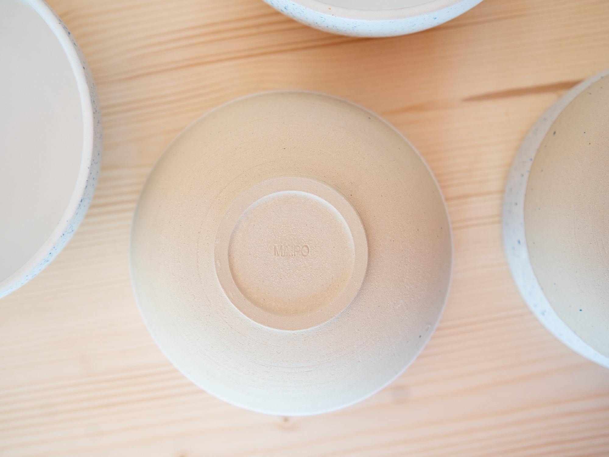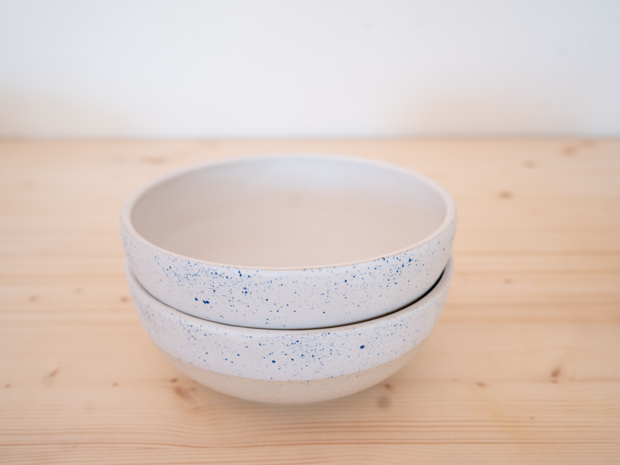 Email blanc mat à l’intérieur et émail blanc mat taché de bleu à l’extérieur