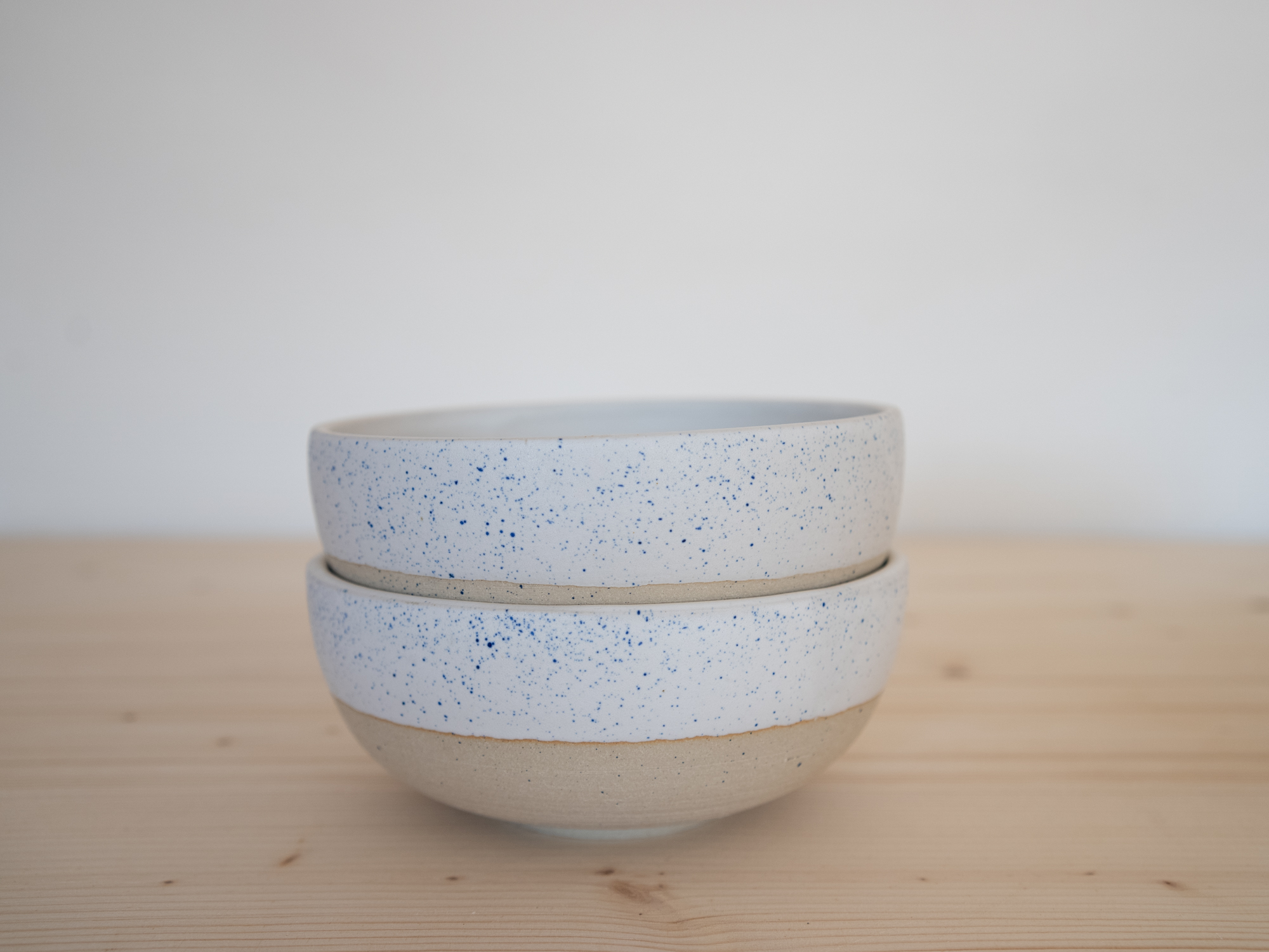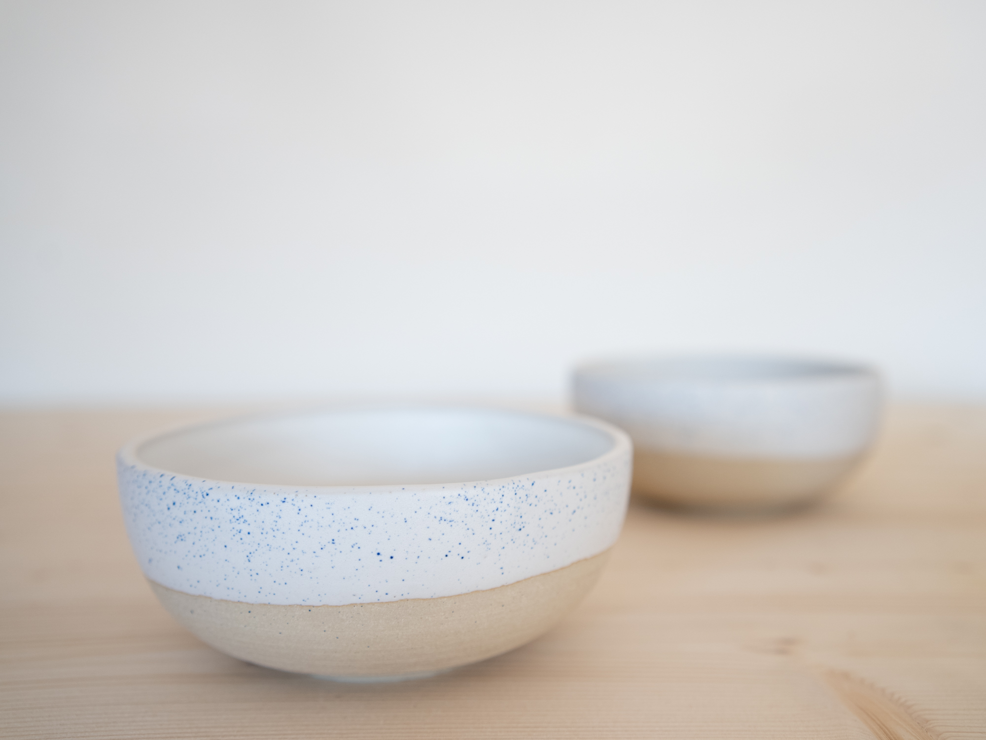 Email blanc mat à l’intérieur / émail blanc mat taché de bleu à l’extérieur